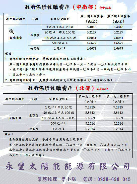 105年度太陽光電發(fā)電設(shè)備免競標(biāo)對象電能躉購費(fèi)率