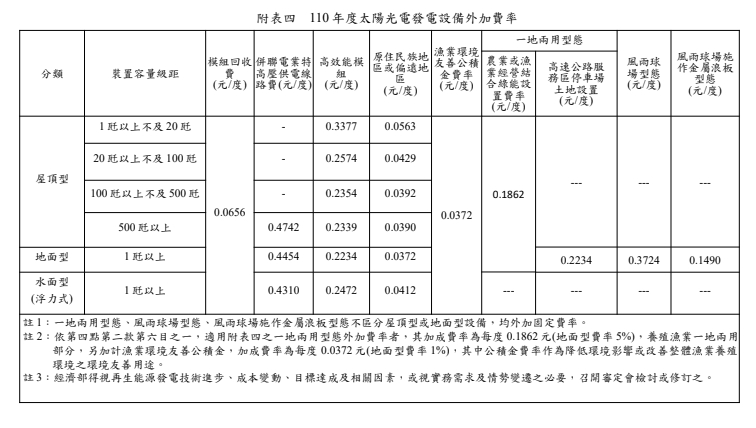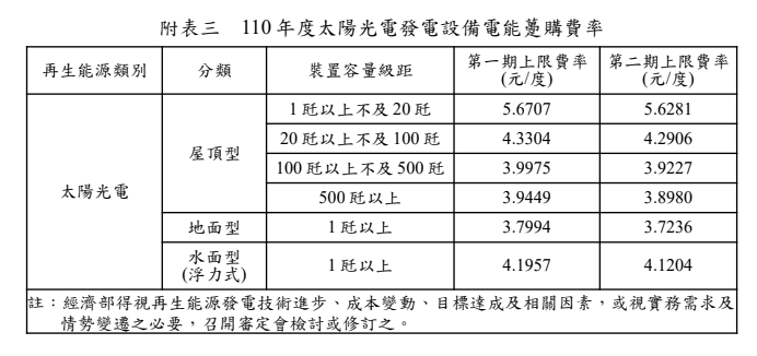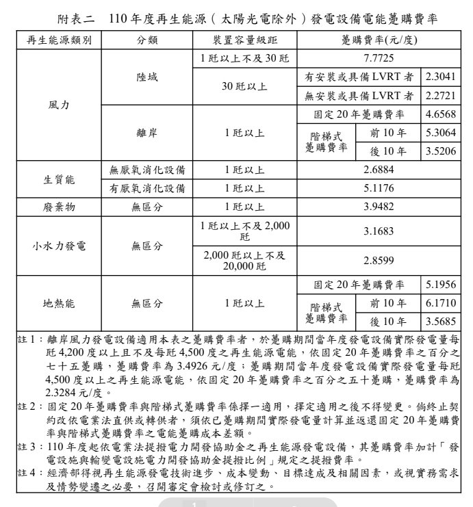 民國110年(西元 2021年)購電費率